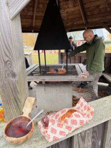 Efter vandringen bjöd sportfiskeföreningen på korvgrillning vid stugorna.