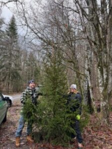 Tack alla som kom och hjälpte oss att rensa bort granar idag! Det var god uppslutning till Linneröd när vi hade vår årliga julgranshämtning. Hela familjer kom ut med barnen, far-morföräldrar, vänner och ett helt hundsällskap besökte Linneröd under de två timmar som vi hade ’öppet’. Vi uppskattar att det sågades upp mot 65-70 granar. Många trevliga möten och diskussioner. Vi hann även med att såga upp träd som tippat över vita slingan och prova vår nyinköpta slyuppdragare. De funkar bra på våra högmossar trots att slyn har blivit nedsågade några gånger. Den ska vi få bruk av framöver.